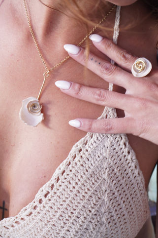 Ondulario es un homenaje al espiral dentro del caracol. Durante años he ido con mis hermanas a la playa de Cojimíes, todos nuestros viajes a una hosteria vía a esta pequeña ciudad tienen un tesoro por descubrir, y son las conchas que recojemos cada vez que vamos. La playa es casi desierta y tengo la oportunidad caminar y recolectar cosas maravillosas. Quiero rescatar con esta colección las conchas y caracoles rotos, los que otra persona descartaría, representan belleza y vulnerabilidad.